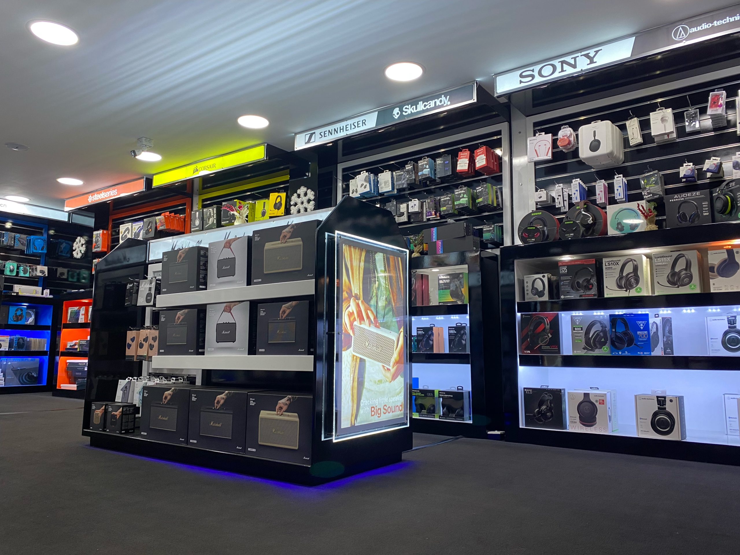 Our design team spent extensive hours during the project initiation phase with the client who is a Gaming Fame in town in order to understand the characteristics of a gaming enthusiast which made it possible to come up with this flagship store as the outcome which touches the nerves of every gaming enthusiast across the island and beyond through it’s vibrant colour theme, solid structure and the ambient lighting
